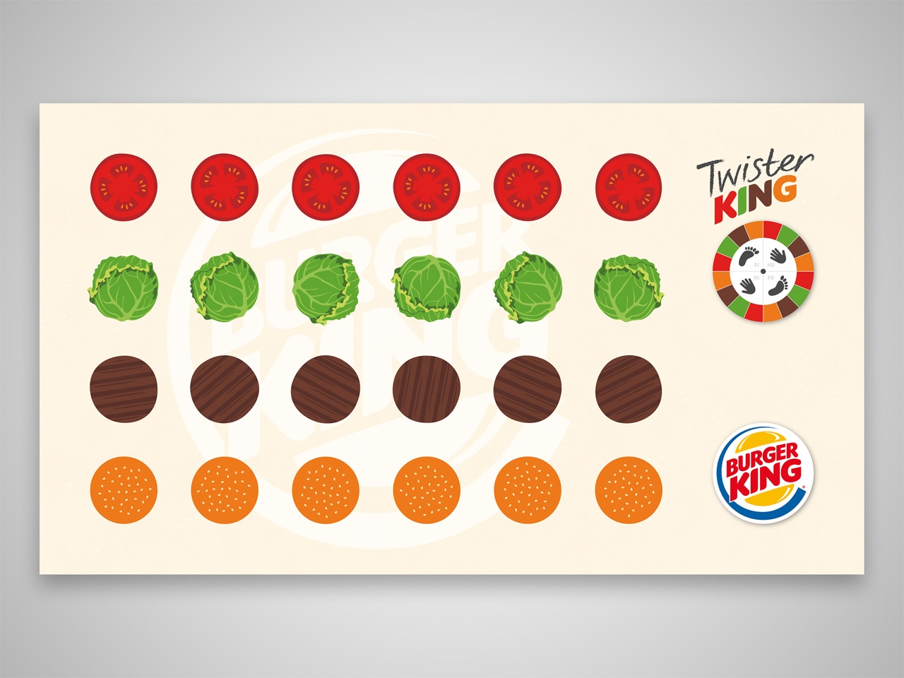 But it was not all about designing outdoor signaling for Burger King. At that time, I had the opportunity to design several proposals for children’s games for the Play King area of its restaurants. I tried to review the famous Twister and Tres en Raya, on a Burger King style this time … with a so cool result! Proud to have contributed a bit to this kind of client, it was so much fun!